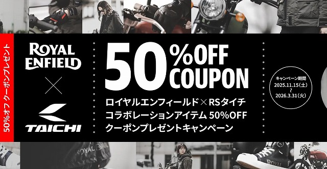 2026年1月1日(木)より2026年3月31日(火)まで、「ロイヤルエンフィールド純正アパレル購入サポートクーポンプレゼントキャンペーン」を実施!